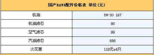 4.保養(yǎng)費(fèi):RAV4的首保為5000公里,保養(yǎng)間隔為5000公里,首保免費(fèi),質(zhì)保期為2年4萬公里。據(jù)了解RAV4每5000公里要經(jīng)歷一次小保養(yǎng),包括工時費(fèi)在內(nèi)費(fèi)用大概為375元,2萬公里的大保養(yǎng)在1000元左右,這樣算來6萬公里RAV4的總費(fèi)用在5500元左右.平均每年2萬公里保養(yǎng)費(fèi)用在1833元左右。