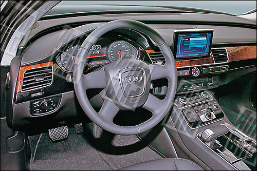新一代奧迪A8的內(nèi)飾也進(jìn)行了重新設(shè)計(jì),其最大的特點(diǎn)是儀表板時(shí)速與轉(zhuǎn)速表的中間區(qū)域應(yīng)該會(huì)采用全新的多媒體顯示界面。其次,將采用升降式的LED屏幕設(shè)計(jì)。第三代MMI系統(tǒng)也體現(xiàn)了奧迪在人機(jī)交互上的科技領(lǐng)先標(biāo)志。