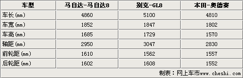 國產(chǎn)馬自達(dá)8的車身尺寸為長4860mm;寬1852mm;高1685mm,完全達(dá)到了大型MPV的身材尺寸。從上表我們可以看出馬自達(dá)8的身材處于別克GL8和本田奧德賽之間,但是馬自達(dá)8的車型是三款車最寬的,相比其它兩款車型它的橫向空間是最寬裕的。馬自達(dá)8的軸距達(dá)到了2950mm,將近3米的長度完全可以滿足多人商務(wù)用途。