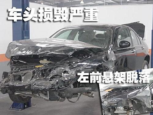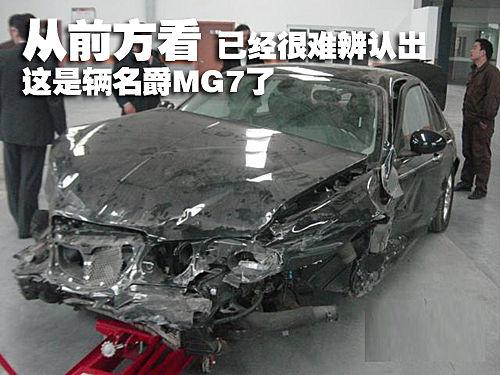 當我們看見這輛被拖回來的名爵MG7時,因為車輛受損比較嚴重,如果不看車尾從車頭方向看上去,已經(jīng)很難辨認出這到底是一輛什么車了。