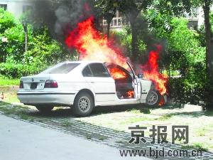 昨天中午12時(shí)許,烈日炎炎下,通州區(qū)西露園小區(qū)里的一輛寶馬轎車突然躥出了火苗,經(jīng)過通州區(qū)新華街消防中隊(duì)10分鐘的撲救,大火終于被撲滅。