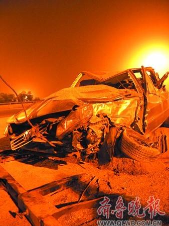 小轎車上總共有 4名乘客,都只是手臂和額頭處受了些輕微的擦傷。小轎車的車主告訴記者,他們是從沈陽來山東游玩的,目的地是煙臺,不想剛到濟南就發(fā)生了這起事故。大貨車的司機在事故勘驗單上簽字之后就急匆匆離去了。