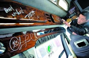 “小皇帝”詹姆斯、姚明隊友“麥蒂”、“大鯊魚”奧尼爾、“蜂王”保羅、“小黑豆”布魯克斯、法國足球巨星亨利、“香港天王”劉德華……司機白先生駕駛著一輛美國進口道奇公羊商務車,每天他都會擦拭著車內(nèi)這些明星們的簽名,這輛車也成了名副其實的“明星專車”。