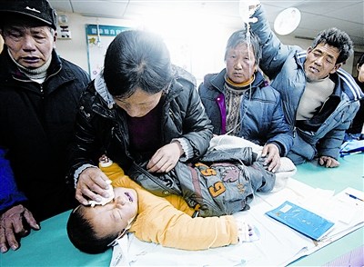 昨晨7時(shí)許,洪湖市沙口鎮(zhèn),王春華發(fā)現(xiàn)前幾天就精神萎靡的2歲兒子蔣志鵬臉色越加蒼白,遂在公公、婆婆和叔公的陪同下,于8時(shí)許將孩子送往沙口鎮(zhèn)衛(wèi)生院。
