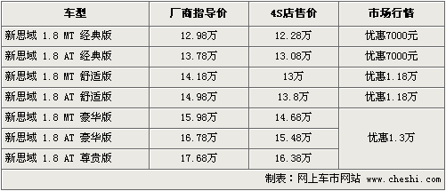 思域一直是東風本田的主打轎車,憑借其時尚的外觀設計和精細的內(nèi)飾做工以及良好的燃油性,已經(jīng)贏得了市場的普遍認可。根據(jù)網(wǎng)上車市價格監(jiān)測系統(tǒng)顯示,目前思域的優(yōu)惠幅度較上個月有所增大,最高可優(yōu)惠現(xiàn)金1.3萬元,現(xiàn)車較為齊全。具體車型價格行情如下: