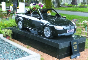 英國車迷史蒂夫·馬什去年去世。為表現(xiàn)他生前對(duì)汽車的熱愛,馬什的家人為他訂做一個(gè)“寶馬”車造型的墓碑。