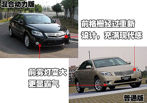 這款混合動力版凱美瑞的整體造型與普通版凱美瑞相同,但前臉部分設(shè)計變得更加前衛(wèi),猶如飛翔的翅膀。混合動力凱美瑞采用了圓形前霧燈,加大的設(shè)計不僅使整車顯得更為霸氣,而且更突出的前進(jìn)氣隔柵。
