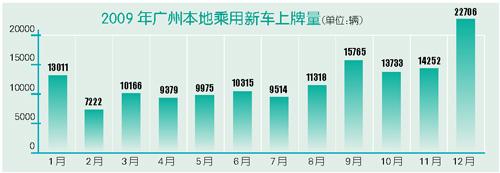 數(shù)據(jù)顯示,去年12月份廣州單月新車上牌量為22706輛,同比增幅達(dá)到全年銷量的最高點(diǎn),日均上牌乘用車新車732輛。2009年最后一個(gè)月車市的火爆為廣州2009年全年乘用新車上牌量畫上了圓滿的句號(hào),同時(shí)也帶動(dòng)了廣東省新車銷量創(chuàng)下“新高”——當(dāng)月以96352輛的成績創(chuàng)造了全年單月乘用新車上牌量的新紀(jì)錄。據(jù)悉,深圳、東莞、佛山等地的全年銷量最高點(diǎn)均出現(xiàn)在12月份。