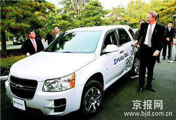 昨天與瓦格納同時亮相的是通用最新研發(fā)的5款新能源汽車,其中歐寶Corsa1.3渦輪增壓柴油車、雪佛蘭E-quinox氫燃料電池車、雪佛蘭Tahoe雙;旌蟿恿、土星Aura輕度混合動力車均為亞洲首次展出。