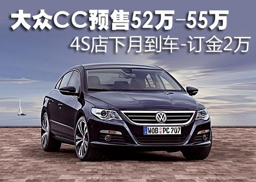 據(jù)4S店銷售人員介紹,目前大眾CC已經(jīng)可以接受消費者預訂,訂金為2萬元。4月份4S店首批車型將到店,預計這款車的售價在52萬-55萬區(qū)間,但具體官方價格尚未公布。配置方面,這款車分為豪華版和頂級版,氙氣大燈、電動折疊加熱外后視鏡、定速巡航及電子駐車制動器等均是兩款車型的標準配置。但由于價位以及市場定位的不同,大眾CC轎跑頂級版配備了更加高級的無鑰匙啟動及鎖定系統(tǒng)好和30GB內置硬盤及觸摸屏語音控制。
