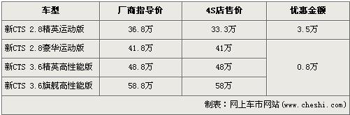在美國素有“駕駛者之車”美譽的凱迪拉克CTS豪華運動轎車,是一款將動力性、操控性、舒適性完美結(jié)合的經(jīng)典產(chǎn)品,其的售價區(qū)間為36.8萬元-58.8萬元。近日據(jù)網(wǎng)上車市價格數(shù)據(jù)監(jiān)測顯示,凱迪拉克新CTS最高優(yōu)惠仍為3萬元,具體詳情看下表: