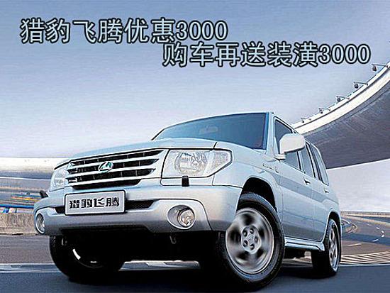 據(jù)長(zhǎng)豐獵豹銷售人員表示,購(gòu)買長(zhǎng)豐獵豹除了可以得到3000元的價(jià)格優(yōu)惠外,還可以得到3000元的裝潢大禮包。