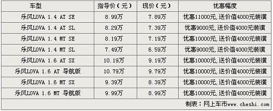 據(jù)雪佛蘭LOVA“樂(lè)風(fēng)”銷(xiāo)售人員表示,購(gòu)買(mǎi)雪佛蘭LOVA“樂(lè)風(fēng)”車(chē)型除了可以得到10000元的價(jià)格優(yōu)惠外,還可以得到價(jià)值4000元的裝潢大禮包。優(yōu)惠后的雪佛蘭樂(lè)風(fēng)LOVA 1.4 SL MT僅售6.59萬(wàn)元。