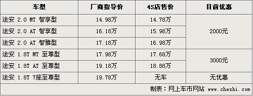 據(jù)4S店銷售人員介紹,新途安經(jīng)過官方價(jià)格下調(diào)后優(yōu)惠的幅度有所減少。目前消費(fèi)者購車的話幅度在2000元—3000元,其中2.0三款車優(yōu)惠2000元,1.8T優(yōu)惠3000元。4S店現(xiàn)車主要以銀色現(xiàn)車為主,1.8T7座至尊版沒有現(xiàn)車供應(yīng),消費(fèi)者訂車的話需要等2個(gè)星期左右,訂金交2000元。