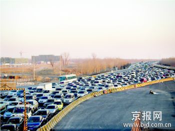 昨天下午,從天津旅游回京的胡先生在京津塘高速路大羊坊收費(fèi)站附近遭遇堵車。從收費(fèi)站放眼望去,進(jìn)京方向的車輛將道路“充”得嚴(yán)嚴(yán)實(shí)實(shí),一眼望不到頭,幾位等候多時(shí)通過收費(fèi)站的司機(jī)推測(cè)“車流大概得有六七公里那么長(zhǎng)”。