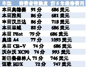 作為一種耐用消費(fèi)品,車輛的耐用性(使用成本)已經(jīng)成為購車的主要衡量指標(biāo)。近日,美國財經(jīng)雜志《福布斯》評出了10大經(jīng)久耐用車型(Ten Toughest Cars)。評比標(biāo)準(zhǔn)涉及消費(fèi)者信賴度,新車故障率,前5年維修費(fèi)用及安全性能等綜合表現(xiàn),結(jié)果日系車大獲全勝。除了奧迪A4、沃爾沃XC90外,排名最耐用性前10名中有8款是日本車系,美國本土車型則全軍覆沒。其中本田一家就占了6款,奧德賽和雅閣分別位于排行榜的前兩位,這或許可以解釋日系車在全球范圍內(nèi)的成功。(王燦彬)
