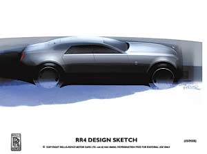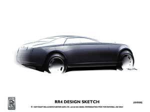 勞斯萊斯汽車有限公司日前公布了全新車型的首批設計草圖。作為勞斯萊斯家族的最新成員,此款代號為RR4的車型將于2010年正式發(fā)布。RR4將略小于幻影,并配備勞斯萊斯獨有的新型引擎。