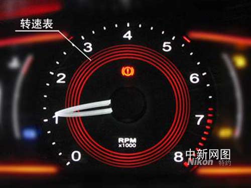 位于中央的轉(zhuǎn)速表去,首次采用脈沖感應(yīng)設(shè)計,使儀表盤更具運動感,并能快速靈活的表示發(fā)動機(jī)轉(zhuǎn)速。中央轉(zhuǎn)速盤上還包括用來表示車輛手剎狀態(tài)的手剎指示燈等車輛信息。當(dāng)手剎被拉起后,該指示燈自動點亮。手剎被放下時,該指示燈自動熄滅。