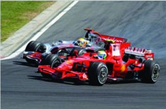 如果說位列第三的馬薩利用發(fā)車超過第二的科瓦萊寧屬于情理之中,那么巴西人一鼓作氣繼續(xù)攻下漢密爾頓的位置絕對(duì)出乎了所有人的預(yù)料。就在全場(chǎng)比賽的第一個(gè)彎角,身處外道的馬薩,直面身旁的漢密爾頓,兩個(gè)前輪因?yàn)楸蓝脸龅那酂熕坪跽嘎吨臀魅说臎Q心。取得領(lǐng)先之后,馬薩慢慢拉大著與邁凱輪兩位車手的距離,率先在上周測(cè)試“鯊魚鰭”的他對(duì)目前這款賽車得心應(yīng)手,而在排位賽之后馬薩隨即表示法拉利仍舊有機(jī)會(huì)。這種機(jī)會(huì)在漢密爾頓第30圈遭遇左前輪爆胎之后無疑顯得更加的大。