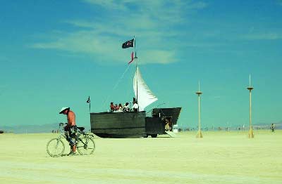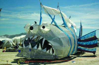 說到美國,迄今為止恐怕沒有什么比汽車更能代表這個(gè)國度了。所以,在今年的節(jié)日上,我們也有幸看到了各式各樣的怪異汽車:木制的悍馬被涂得五顏六色、窮兇極惡的大鯊魚齜牙咧嘴、美國式的泰坦尼克號……一句話,在追求異想天開與荒誕的BurningMan節(jié)日,沒有什么不可能?纯催@些圖片,您是否也能做一輛?