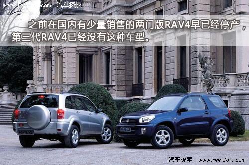 由于RAV4在美國(guó)和歐洲地區(qū)都有銷(xiāo)售,考慮到歐洲消費(fèi)者的用車(chē)習(xí)慣之前的兩代產(chǎn)品均有兩門(mén)版。而從2006年開(kāi)始生產(chǎn)的第三代產(chǎn)品開(kāi)始就已經(jīng)不再提供兩門(mén)車(chē)型,因此可以肯定國(guó)內(nèi)也不會(huì)再有兩門(mén)版RAV4銷(xiāo)售了。