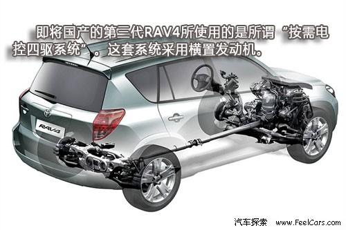 但值得注意的是,之前兩代RAV4采用的都是全時(shí)四驅(qū)系統(tǒng),與此相配合發(fā)動(dòng)機(jī)也使用了縱置的設(shè)計(jì)。而即將國(guó)產(chǎn)的第三代RAV4所使用的是所謂“按需電控四驅(qū)系統(tǒng)”(Electronic On-DeMand 4-wheel drive)。這套系統(tǒng)采用橫置發(fā)動(dòng)機(jī),在需要時(shí)通過(guò)液力粘性耦合器將動(dòng)力傳至后輪。