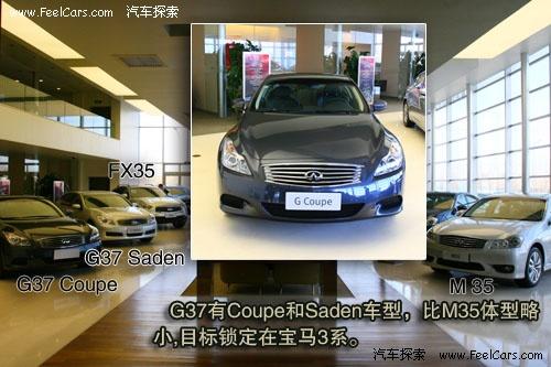 進入中國市場后英菲尼迪帶來了幾乎包括轎車、SUV和Crossover車型在內(nèi)的幾乎全系產(chǎn)品。剛剛上市的G37是接替G35的中級車產(chǎn)品,在英菲尼迪的產(chǎn)品系列中比M級略低,出色性能和動感造型直指寶馬3系。G37 Coupe顧名思義是一款雙門硬頂車型,盡管如此其軸距與G37 Saden完全一致達到了2850毫米。