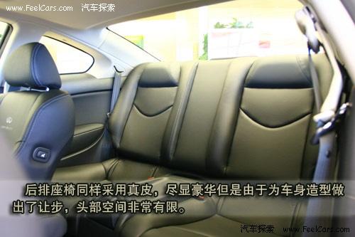 后排乘員可以通過靠背上角的拉手將椅背放到從而更輕松的進入后排。在車內(nèi)時,則可以按下副駕駛椅背側(cè)面的按鈕后可以將座椅整體前移,方便下車。雖然后排座椅的真皮用料同樣盡顯豪華,但由于為造型做出了犧牲,頭部空間非常有限。
