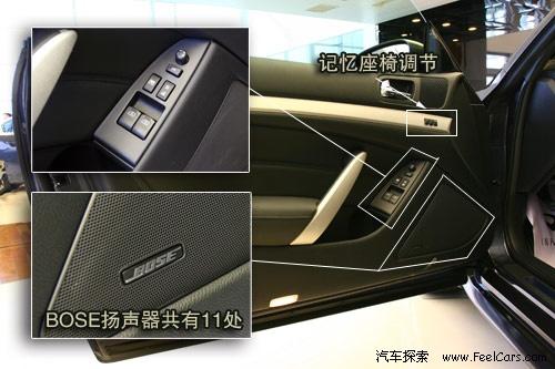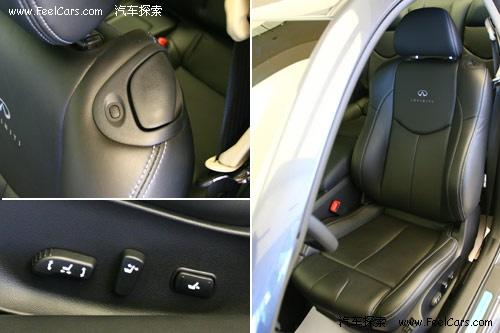G37 Coupe的座椅顯示出英菲尼迪豪華品牌的定位,打孔通風真皮座椅調(diào)節(jié)功能豐富。駕駛席座椅可以進行14向電動調(diào)節(jié),副駕駛席為8向。BOSS音響在國內(nèi)早已是家喻戶曉,在英菲尼迪G37 Coupe上共有11個BOSS揚聲器,可以播放6碟CD機或是由娛樂接的信號。