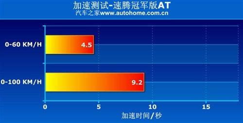 搭載了動力強勁的發(fā)動機,又有性能超眾的輪胎,速騰冠軍版入選本文推薦車型似乎是毫無爭議的事情,但我們畢竟還得用事實說話,因為我們是有硬性指標(biāo)的。首先是加速測試,速騰冠軍版自動擋車型我們實測的成績是9.2s。