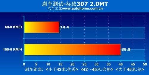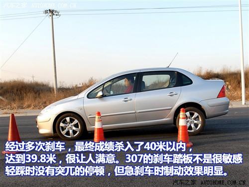 標(biāo)致307沒有裝備什么特殊的剎車系統(tǒng),也沒有速騰冠軍版那樣的寬胎,但剎車成績(jī)還是不錯(cuò)的,39.8米比我們定義的優(yōu)秀剎車距離最高線42米要短不少,而且在連續(xù)剎車測(cè)試中,剎車系統(tǒng)和輪胎的熱衰性控制的很好,基本沒有出現(xiàn)因過(guò)熱而增大距離的情況。只是由于307的懸掛調(diào)教偏軟,全力制動(dòng)時(shí)前懸掛被壓縮到極致,后輪幾乎沒有附著力,此時(shí)車輛穩(wěn)定性比較令人擔(dān)憂。