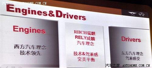 事實上,奇瑞對G6寄予如此高的希望并非是毫無依據(jù)的。在發(fā)布儀式現(xiàn)場,奇瑞重點介紹了新品牌的車型理念——技術與駕乘感的完美平衡。在奇瑞看來,以歐洲為代表的西方汽車理念追求技術的領先;而以日本、韓國為代表的東方汽車理念則追求駕乘感受,而G6則旨在將兩者做到平衡。因此,我們在G6的開發(fā)團隊中,可以看見分別來自奧地利、韓國以及本土的研發(fā)工程人員。