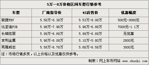 二、價位在5萬—8萬元之間的車型多少顯得有點尷尬,但是像剛上市沒多久的駿捷FRV、長城炫麗還是引來不少的關(guān)注度。這個區(qū)間車型在價格,配置,安全和舒適度方面表現(xiàn)都比較中庸。但是在駿捷FRV的身上我們能夠看到自主品牌的長足進步。