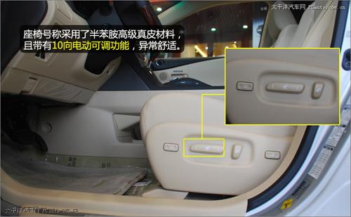 頂配的新RX350尊貴版號(hào)稱采用了非常高級(jí)的半苯胺真皮材料。這種材料與普通的真皮材料有何不同小編也不太清楚,但是屁股坐上去舒適度極佳還是可以感覺(jué)得到的,座椅同時(shí)帶有10向的電動(dòng)可調(diào)功能。
