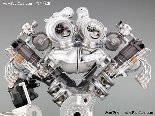 兩個渦輪與進(jìn)排氣歧管位于V型汽缸夾角中央