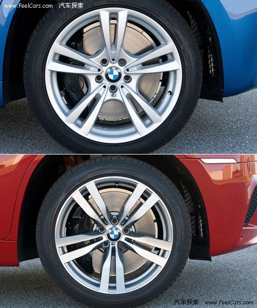 其他方面,前輪275/40R20、后輪315/35R20的高性能運(yùn)動輪胎進(jìn)一步加強(qiáng)了魁梧車身的運(yùn)動氣息,細(xì)心觀察還可發(fā)現(xiàn)X5M同X6M的20寸超輕輪轂的造型雖然相似但還是有些許不同。為了保證足夠的制動力和良好的視覺效果,四輪均采用了四活塞卡鉗的制動系統(tǒng)。