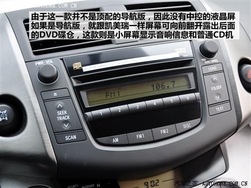 音響面板很簡單,沒有導(dǎo)航版的那么復(fù)雜,只是一個小屏幕來顯示音響信息,當(dāng)然也沒有DVD,只是配備了普通的CD。整個中控面板的材料在視覺上都比較有質(zhì)感和光澤;【造型和三個圓的按鍵組合設(shè)計得和諧而美觀。