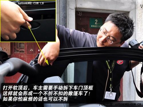 開關(guān)頂棚很簡(jiǎn)單,在變速器前方的按鈕中選擇相應(yīng)的控制,頂棚就會(huì)自動(dòng)打開。它不是一鍵式的,而是隨時(shí)聽從你的說停就停,頂篷可以隨意的設(shè)定進(jìn)程,你想只開五分之一、一半或全開都無(wú)所謂。