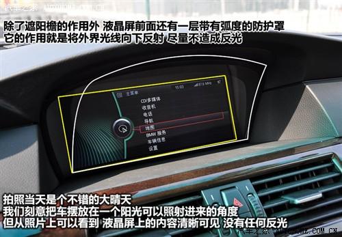 在一些配有中控臺(tái)液晶屏的車上,經(jīng)常會(huì)遇到屏幕反光而使我們看不清屏幕內(nèi)容的情況,這在陽(yáng)光明媚的天氣或清晨旁晚陽(yáng)光斜射的時(shí)候更容易發(fā)生,但寶馬5系iDrive系統(tǒng)的液晶屏基本不會(huì)遇到這樣的麻煩。