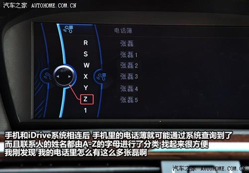 藍(lán)牙免提系統(tǒng)是強(qiáng)調(diào)豪華的車型上的必備配置,在此我們也通過(guò)iDrive系統(tǒng)進(jìn)行了一次和手機(jī)相連的操作。和一般車型上的一樣,iDrive系統(tǒng)提供的藍(lán)牙免提也需要查找、配對(duì)、連接三個(gè)步驟才能和手機(jī)相連,整個(gè)過(guò)程清晰易懂,只要按照提示操作就沒(méi)有任何難度可言。相連后手機(jī)內(nèi)的電話薄可以通過(guò)iDrive系統(tǒng)查詢到,而且電話薄里聯(lián)系人的姓名都按A-Z字母進(jìn)行了分類,用起來(lái)比較方便。