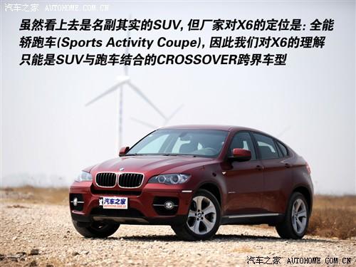 跨界的概念最早出現(xiàn)在尺寸比較小的車上,例如我們接觸較早的SX4和CROSS POLO,但誰也沒有規(guī)定只有小車才能跨界吧?現(xiàn)在跨界的概念已經(jīng)延伸到了SUV和跑車領(lǐng)域,那么今天我們體驗的寶馬X6是怎么跨界的呢?廠家說它是一款全能轎跑車,或者說是一款具備越野功能的轎跑車,所以我們可以認(rèn)為它是一款SUV和轎跑車跨界的車型。