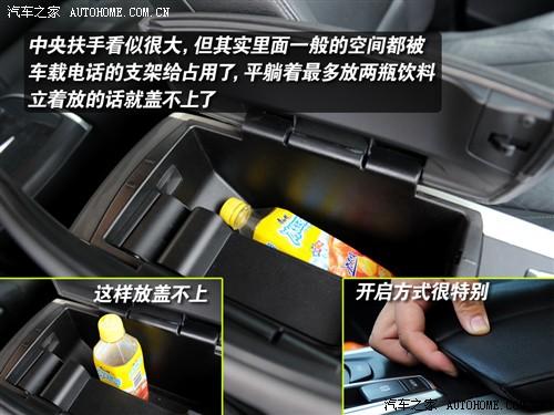 不過(guò)手套箱和扶手箱里面的儲(chǔ)物能力就不敢恭維了,空間都不是很大,手套箱里面還有CD碟倉(cāng),而扶手箱里面有車(chē)載電話(huà)的支架,所以這兩處空間表現(xiàn)都比較一般。
