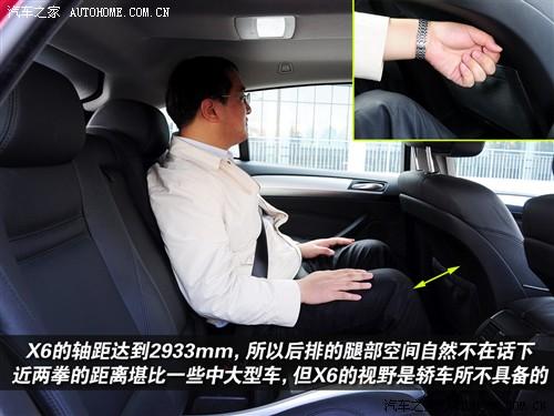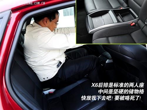說(shuō)到乘坐空間的話(huà),這里就必須要批評(píng)一下X6了,雖然是四輪驅(qū)動(dòng),但后排的地板卻出乎意料地平整,有了如此優(yōu)越的先天條件,可是為什么一定要設(shè)計(jì)成4座車(chē)型呢?后排只有兩個(gè)座位,實(shí)在有點(diǎn)浪費(fèi)如此大的空間了。