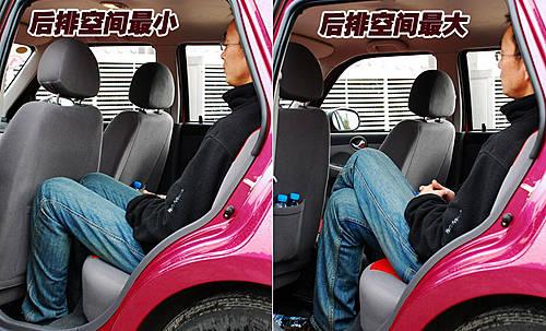 力帆320在內(nèi)部空間表現(xiàn)最好的應(yīng)該是后排的腿部空間,從圖中可以看的出來。將前排座椅調(diào)到最后,使后排達(dá)到最小的腿部空間,這時坐在后排的乘客也不會感覺太多緊促感。而當(dāng)后排的腿部空間最大的時候,后排乘客的乘坐舒適性更加優(yōu)秀,寬大的空間讓人很難相信這是一款微型轎車。