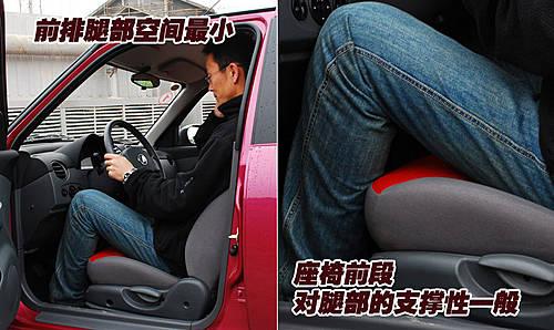 力帆320前排座椅采用包裹性較強(qiáng)的織布運動型座椅,靠背對身體的包裹性非常不錯。但座椅坐墊比較窄小,對腿部的支撐性還是感覺不太到位,但作為一款微型轎車,我們并不能要求太多。