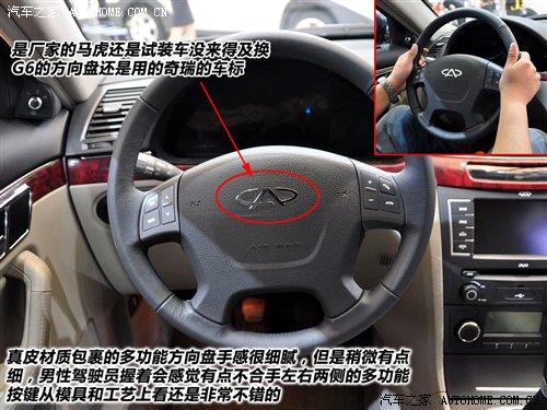 一坐進G6車內(nèi),一眼就先看到了它的一個小BUG——作為奇瑞瑞麒品牌產(chǎn)品的G6,既然已經(jīng)有了自己新的車標,為什么方向盤上的LOGO還要用奇瑞的呢?是廠家的馬虎還是來不及換標呢?希望廠家的朋友盡早對此作出調(diào)整,現(xiàn)在這樣給人感覺很不好,有拼湊之嫌。不過,這個用真皮材質(zhì)包裹的多功能方向盤的手感還真挺不錯的,接觸面手感比較細膩,只是作為男性駕駛員,編輯認為方向盤稍微有點細,握著有點不太合手。左右條幅上的功能按鍵從模具工藝上看還是值得肯定的。