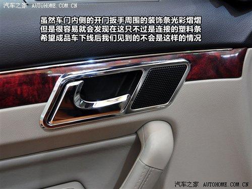 雖然車門內(nèi)側(cè)的開門扳手周圍的裝飾條光彩熠熠,但是很容易就會(huì)發(fā)現(xiàn)在這只不過是連接的塑料條,希望成品車下線后我們見到的不會(huì)是這樣的情況。在車門上專門用于側(cè)窗玻璃除霜的出風(fēng)口設(shè)計(jì)比較貼心,終于在我們自己的產(chǎn)品中看到了這種人性化度較高的設(shè)計(jì)。這個(gè)小出風(fēng)口在車內(nèi)外溫差較大時(shí),玻璃上的霧氣對(duì)駕駛安全有很大影響,所以保持該區(qū)域內(nèi)的清透非常有必要。