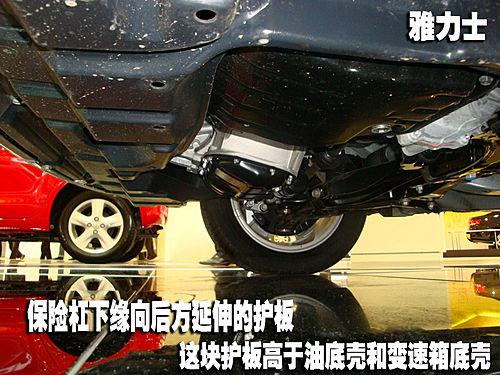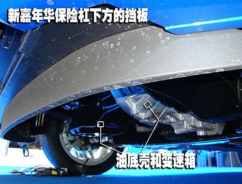 長安福特新建年華和廣豐雅力士相同,沒有設(shè)計(jì)發(fā)動(dòng)機(jī)和變速箱下方的護(hù)板,不過前保險(xiǎn)杠下緣突出的擋板同樣起到了發(fā)動(dòng)機(jī)油底殼和變速箱底殼的第一道防線的作用。