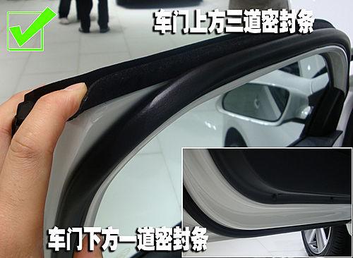 上海大眾POLO在車門上方提供了三道密封條,這是三款車型中獨(dú)有的設(shè)計(jì),在車門下方為一道密封條。并且如果用手去觸摸的話也能夠感覺到POLO的密封條質(zhì)地軟硬適中有很好的彈性。