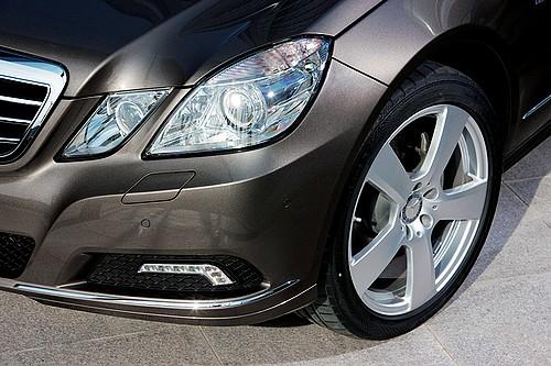 也許你已經(jīng)察覺到它的設(shè)計手法與C級車和GLK有著諸多相似之處,恭喜你答對了。今后一段時間內(nèi),奔馳的新車都將沿用這一設(shè)計思想。廠方還為E級車準備了兩種前臉設(shè)計,可惜區(qū)別僅限于鍍鉻格柵的橫輻密度(有三輻條和四輻條兩款),類似C級時尚型的“大車標式前臉”則被留給了剛剛發(fā)布的E-Coupe,即E級轎跑車。奔馳的官方說法是后者的運動氣質(zhì)與“大標”更契合,可我從設(shè)計師口中套出的答案似乎更具說服力:奔馳的商標是有固定尺寸的,而轎車版的格柵面積比轎跑車大一些,搭配起來會不太協(xié)調(diào)。